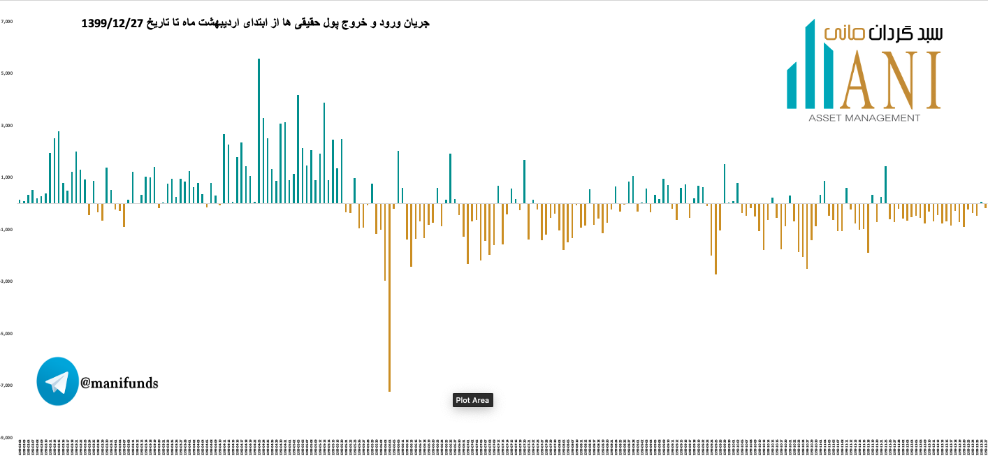 در پایان روز معاملاتی 99/12/27 جریان ورود و خروج پول حقیقی ها حدود منفی 188 میلیارد تومان می باشد. جریان ورود و خروج پول حقیقی ها: