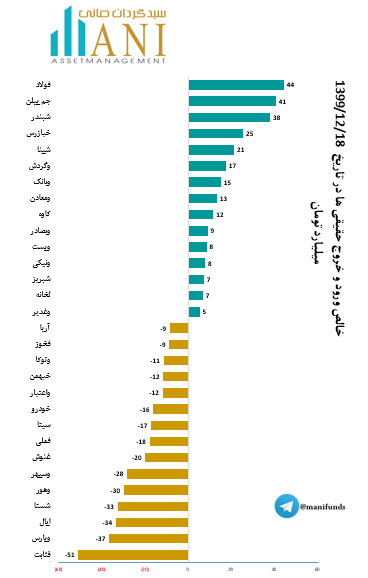15 شرکت با بیشترین خالص ورود و خروج حقیقی ها در تاریخ 1399/12/18
