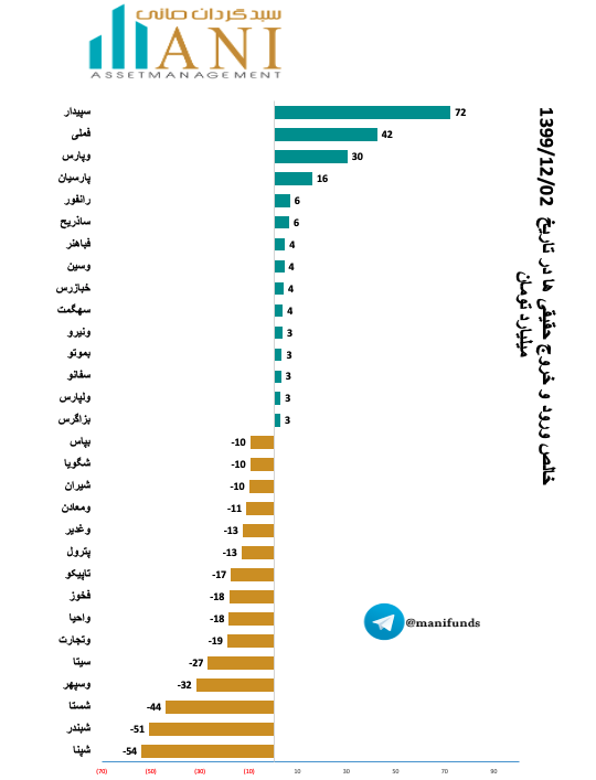 در پایان روز معاملاتی 99/12/02 شرکت هایسپیدار سیستم آسیا و ملی‌ صنایع‌ مس‌ ایران‌ ‌‌ به ترتیب با 72 و 42 میلیارد تومان بیشترین ورود پول توسط حقیقی ها را داشته اند.