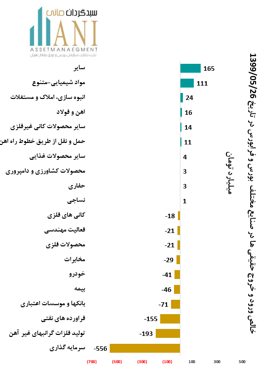 10 صنعت با بیشترین خالص ورود و خروج حقیقی ها در تاریخ 1399/05/26