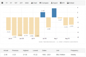 تازه ترین آمارهای رسمی نشان می دهد میزان ذخایر نفت خام آمریکا طی هفته گذشته با افت 2.979 میلیون بشکه ای روبرو شده است.