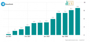 موسسه آمار اروپا اعلام کرد نرخ تورم منطقه یورو در این مدت به بیش از 8.6 درصد رسیده است این رقم در ماه می به 8.1 درصد رسیده بود.