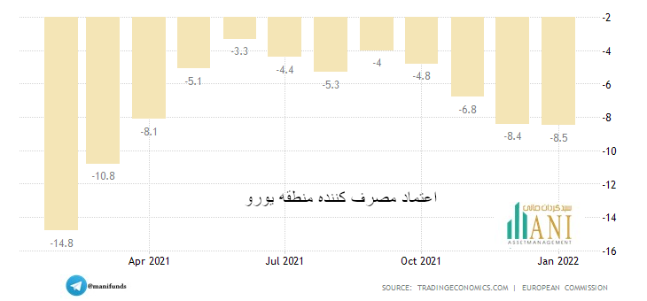 به گزارش تریدینگ اکونومیکس، کمیسیون اروپا اعلام کرد: شاخص اعتماد مصرف کننده منطقه یورو در ماه ژانویه 2022 میلادی به منفی 8.5 واحد رسیده که پایین ترین رقم از مارس 2021 به شمار می رود.