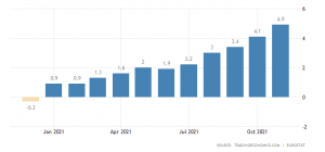 تازه ترین آمارهای یورواستات نشان می دهد نرخ تورم منطقه یورو در ماه نوامبر 2021 میلادی به بیش از 4.9 درصد رسیده است.