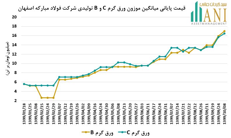 قیمت هر تن ورق گرم B و C شرکت فولاد مبارکه اصفهان از حدود 6 میلیون تومان در ابتدای سال 1399، به حدود 17 میلیون تومان در دی ماه سال جاری رسیده است.