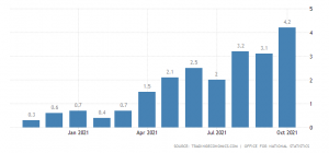نرخ تورم سالیانه انگلیس در ماه اکتبر به بیش از 4.2 درصد رسید که این بالاترین رقم از دسامبر 2011 به شمار می رود.