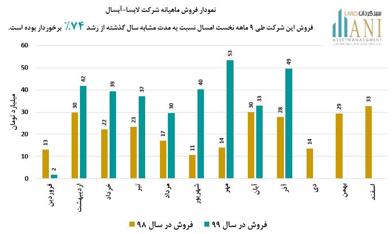همچنین فروش این شرکت در آذرماه امسال حدود 49 میلیارد تومان بوده که نسبت به دوره مشابه در سال گذشته ( 28 میلیارد تومان) از رشد 78% برخوردار بوده است.