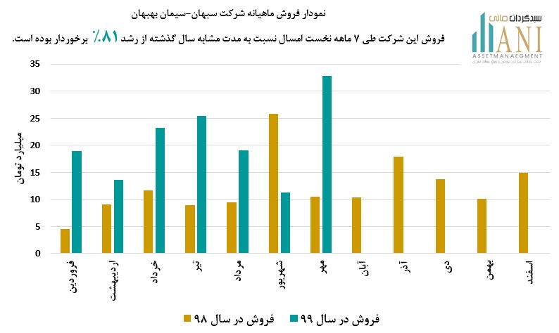شرکت سیمان بهبهان در سال 98 حدود 148 میلیارد تومان فروش داشته است. مبلغ فروش این شرکت در مهر ماه امسال حدود 33 میلیارد تومان بوده که نسبت به دوره مشابه سال گذشته ( 10 میلیارد تومان ) از رشد حدود 214% برخوردار بوده است.