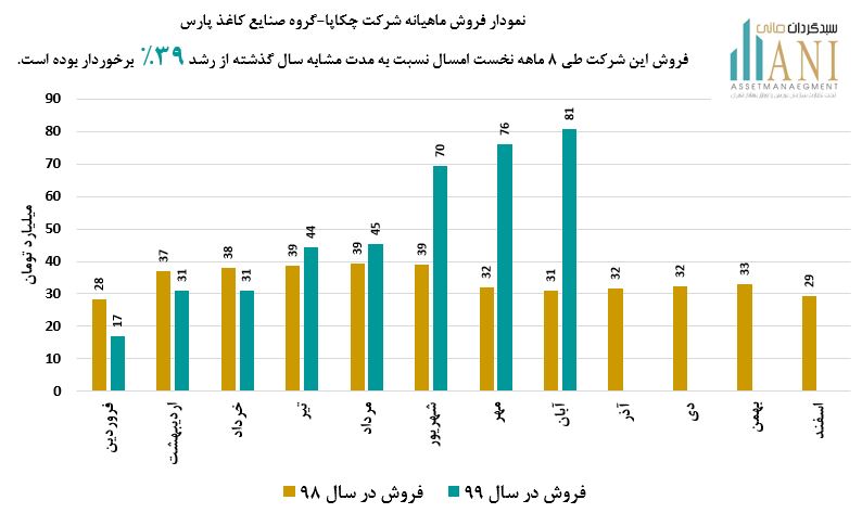 مبلغ فروش شرکت گروه صنایع کاغذ پارس طی 8 ماه ابتدایی سال 1399 حدود 395 میلیارد تومان بوده که نسبت به دوره مشابه سال گذشته ( 284 میلیارد تومان ) از رشد حدود 39% برخوردار بوده است.