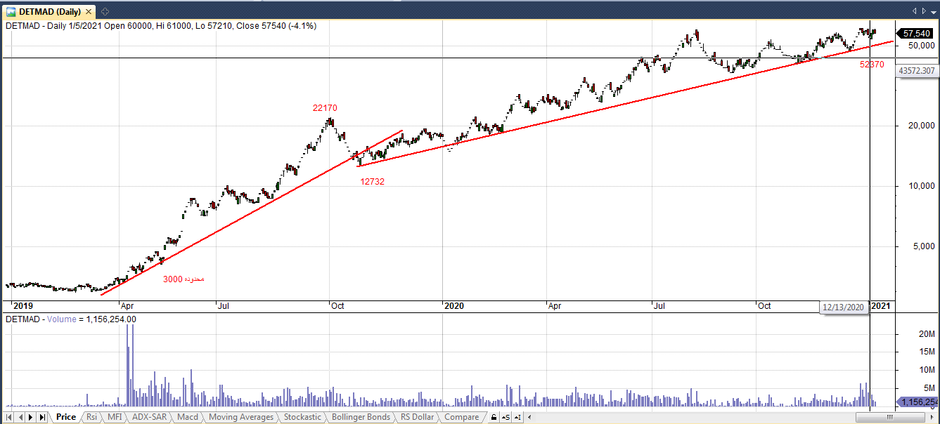 محل تماس نمودار با خط روند محدوده 52370 ریال می باشد.