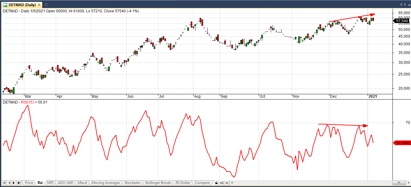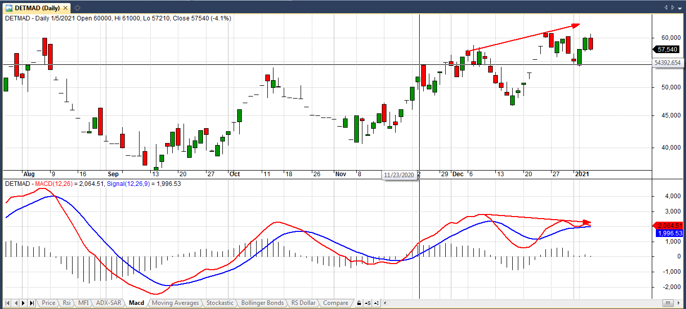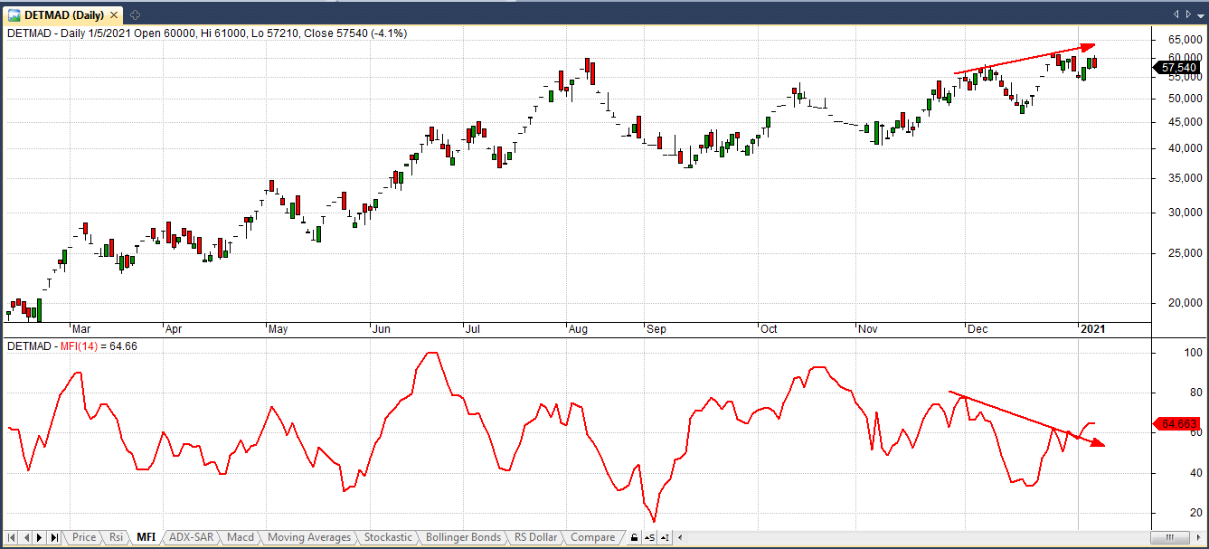 در نمودار MFI واگرایی منفی شکسته شده است .
