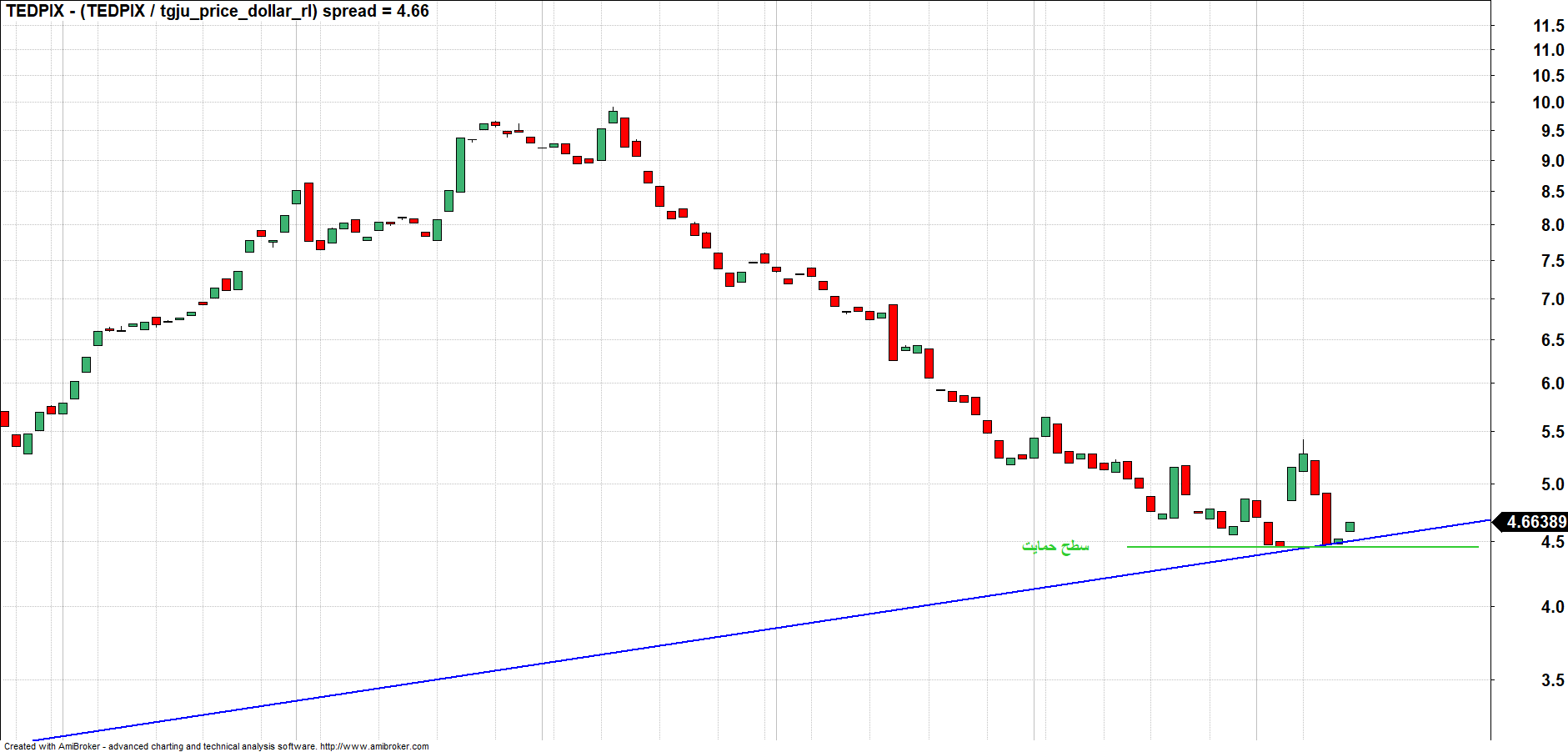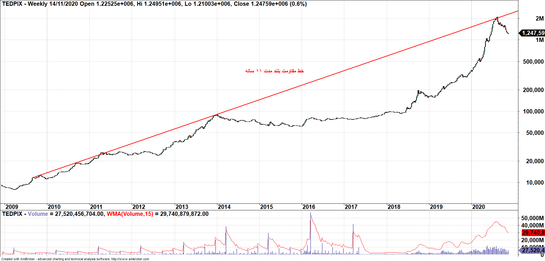 این خط مقاومت از رشد بیشتر شاخص جلوگیری نمود و مقاومتی در برابر رشد بازار سرمایه بود.