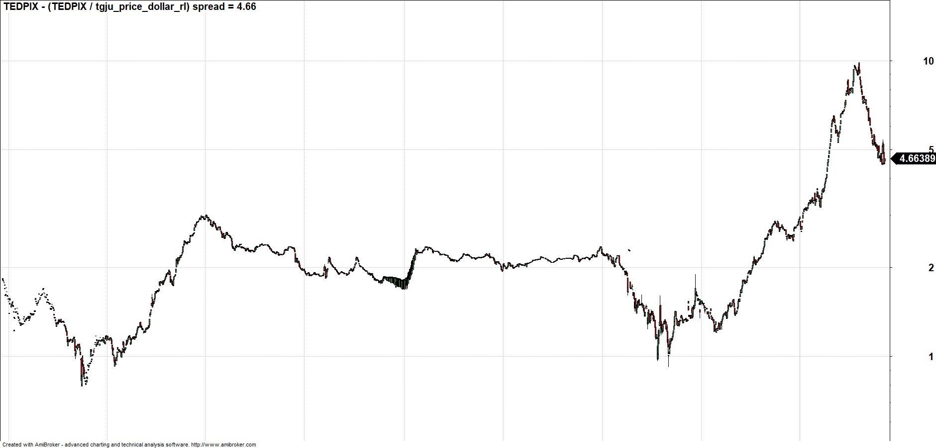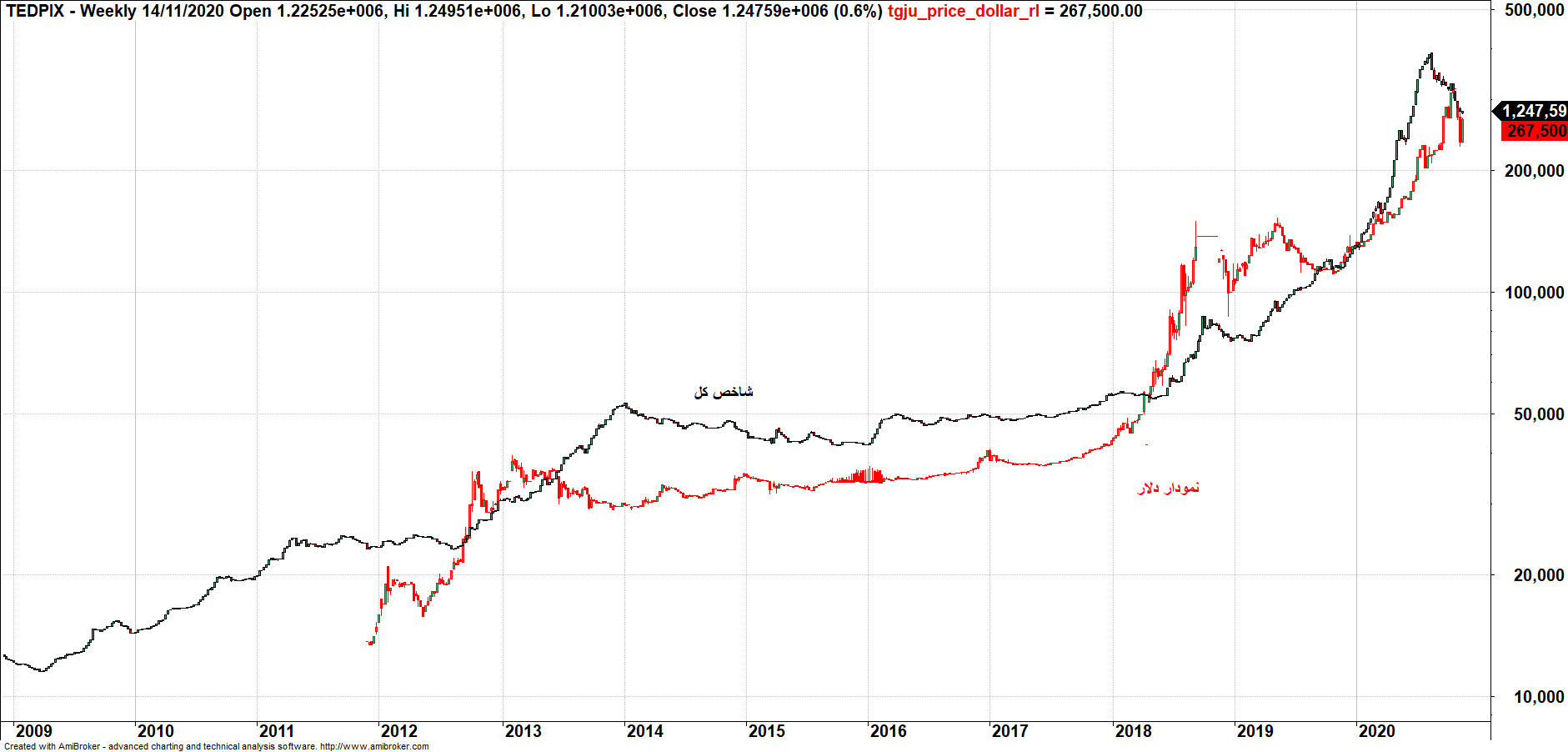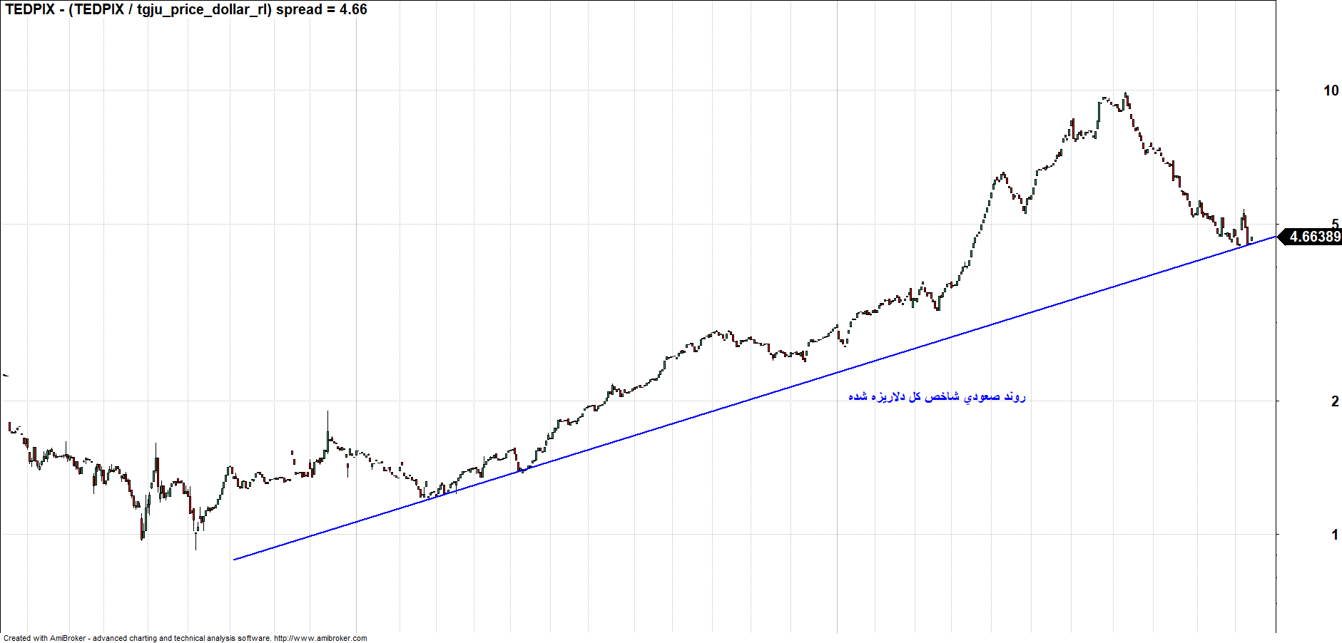 با این مقدمات به سراغ نمودار دلاریزه شده شاخص کل مجددا می رویم.
