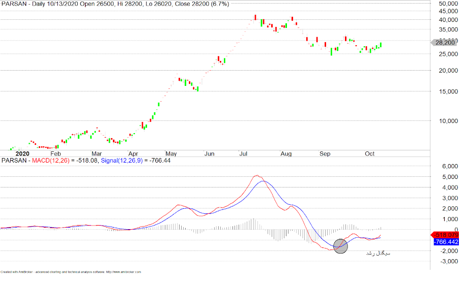 اندیکاتور MACD  سیگنال رشد صادر نموده است.
