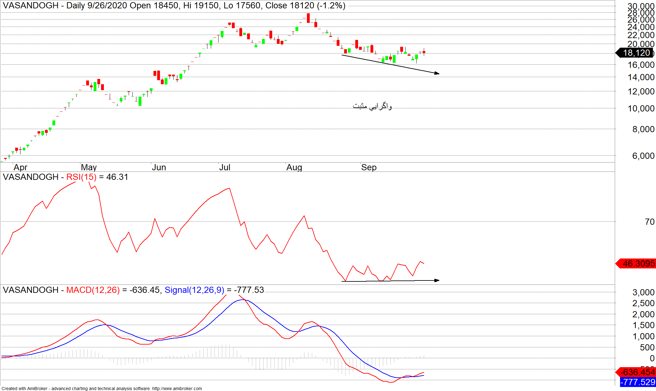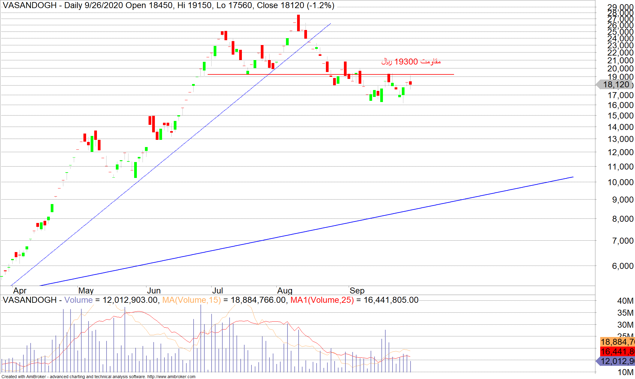 در صورت عبور از محدوده 19300 ريال، می تواند الگوی کف دوبل که یک الگوی برگشتی است، تکمیل گردد. لازم به ذکر است که این سهم همبستگی بالایی با شاخص کل و شرایط کلی بازار دارد.