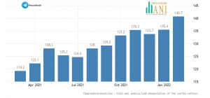 شاخص قیمت مواد غذایی فائو در ماه فوریه 2022 به بیش از 140.7 واحد رسیده که نسبت به ژانویه با رشد 3.9 درصدی روبرو شده است.