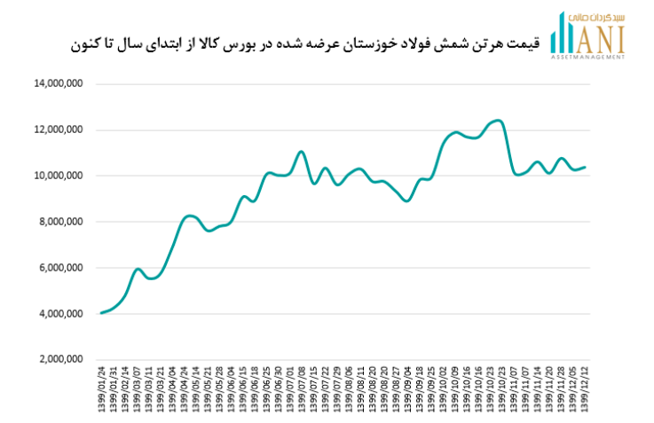 - بر این اساس قیمت هر تن شمش فخوز در تاریخ 12/12/99 به بیش از 10 میلیون تومان رسیده است .