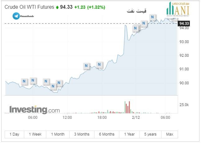 هر بشکه نفت سبک آمریکا نیز با 1.42 درصد افزایش به بیش از 94.42 دلار رسیده است که این بالاترین رکورد از سپتامبر 2014 محسوب می شود.