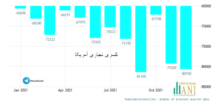 تازه ترین آمارهای رسمی نشان می دهد کسری تجاری آمریکا در دسامبر 2021 به بیش از 80.7 میلیارد دلار رسیده است.