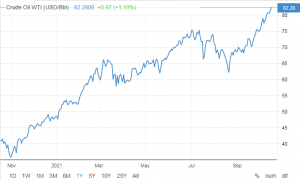 بر اساس این گزارش قیمت نفت سبک آمریکا طی هفته گذشته بیش از 3.6 درصد افزایش یافته است که علت اصلی آن کمبود گاز طبیعی در اروپا و آسیا و رشد تقاضا برای نفت بوده است، تنگناهای مربوط به عرضه نیز تاثیر زیادی بر افزایش قیمت نفت داشته است.