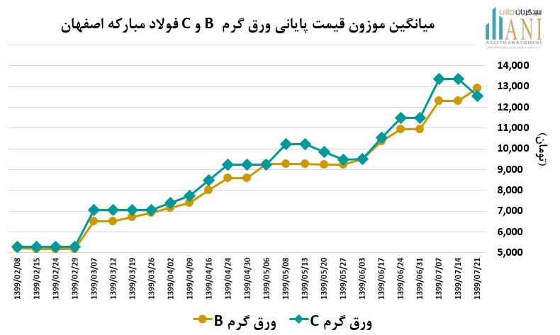 میانگین موزون قیمت پایانی ورق گرم B و C شرکت فولاد مبارکه اصفهان