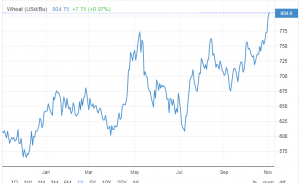 قیمت هر باشل گندم در بازار شیکاگو به بیش از 8 دلار رسیده که این بالاترین رکورد از دسامبر 2012 به شمار می رود.